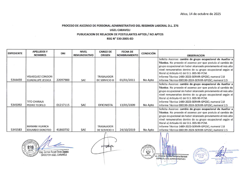 Publicación de postulantes aptos y no aptos: Proceso de ascenso de personal administrativo D.L.276 UGEL Caraveli Deja un comentario Comparte