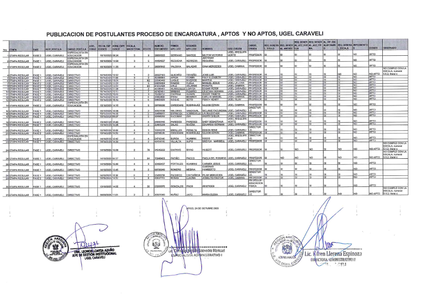 PUBLICACIÓN DE POSTULANTES PROCESO DE ENCARGATURA, APTOS Y NO APTOS, UGEL CARAVELI Deja un comentario Comparte
