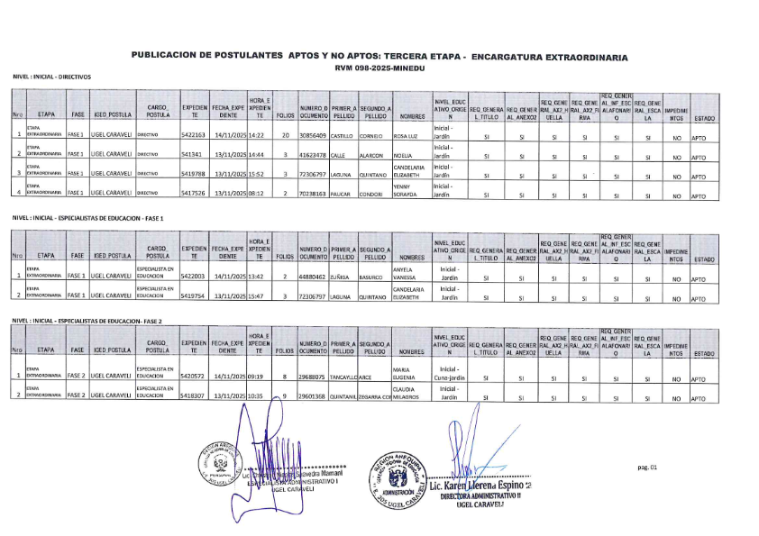 Publicación de postulantes aptos y no aptos Tercera Etapa Encargatura Extraordinaria
