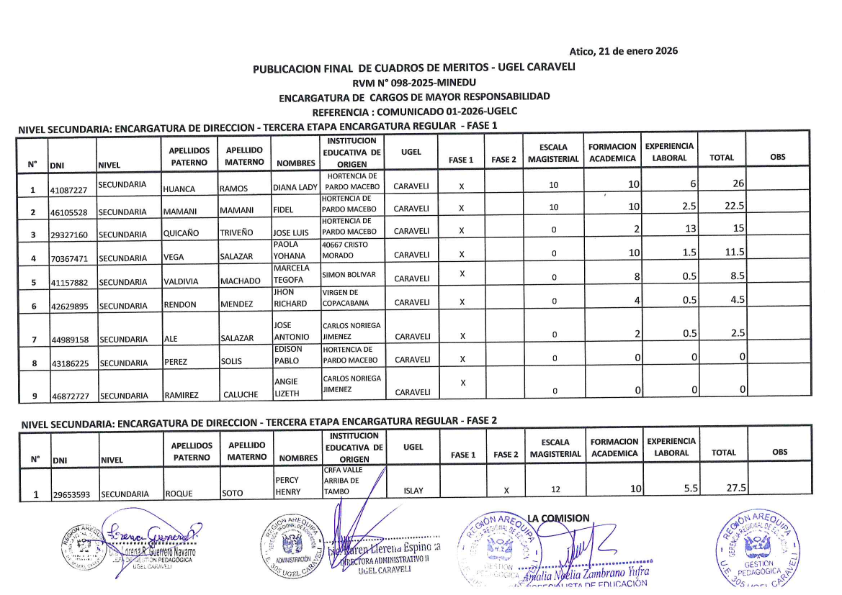 PUBLICACION FINAL DE CUADROS DE MERITOS – NIVEL SECUNDARIA: IE HORTENCIA PARDO MANCEBO – ENCARGATURA DE DIRECCION – TERCERA ETAPA ENCARGATURA REGULAR Deja un comentario Comparte