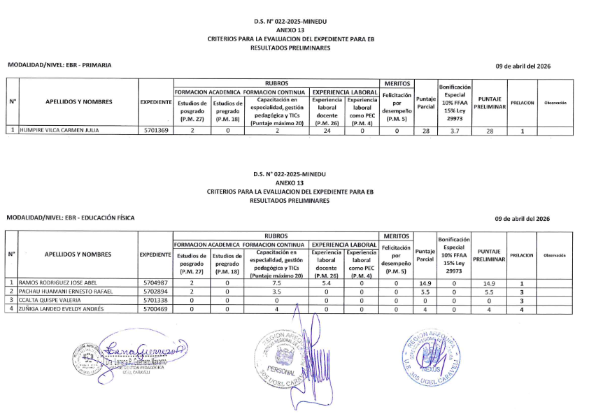 RESULTADOS PRELIMINARES – EVALUCION DE DE EXPEDIENTES – NIVEL PRIMARIA – NIVEL PRIMARIA EDUCACION FISICANIVEL SECUNDARIA DPCC Y EPT Deja un comentario Comparte