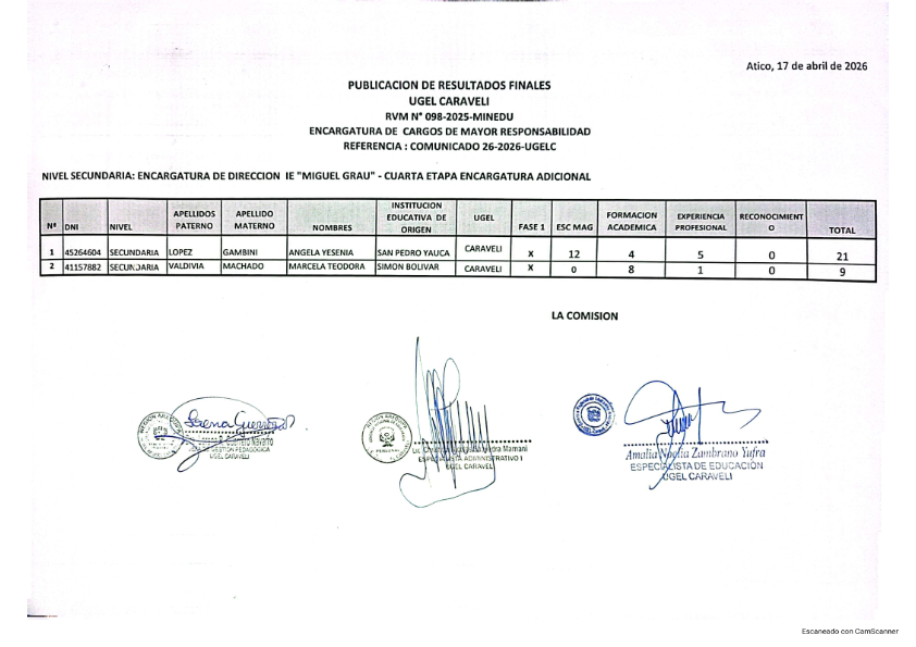 Publicación de Resultados Finales encargatura fase 1 y fase 2