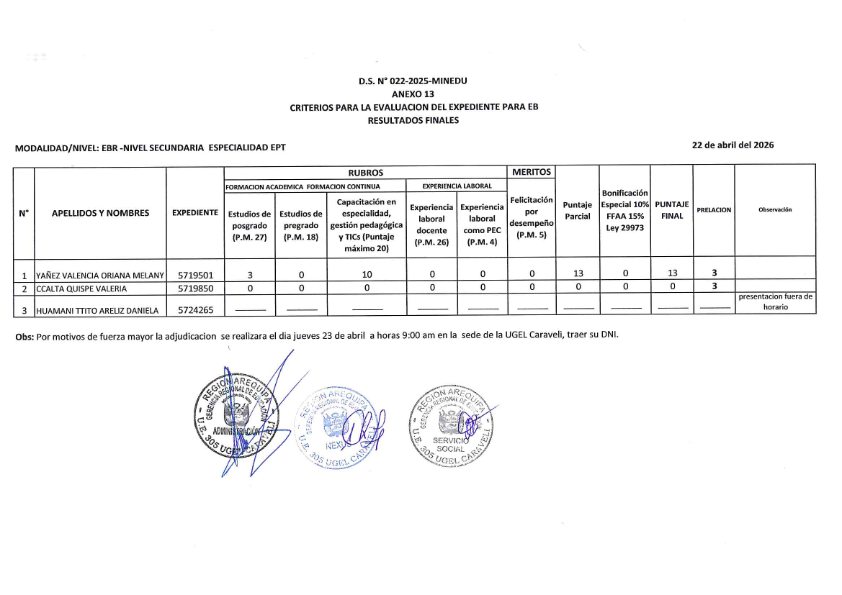 PUBLICACION RESULTADO FINALEVALUACION DE EXPEDIENTENIVEL SECUNDARIA – EPT Deja un comentario Comparte